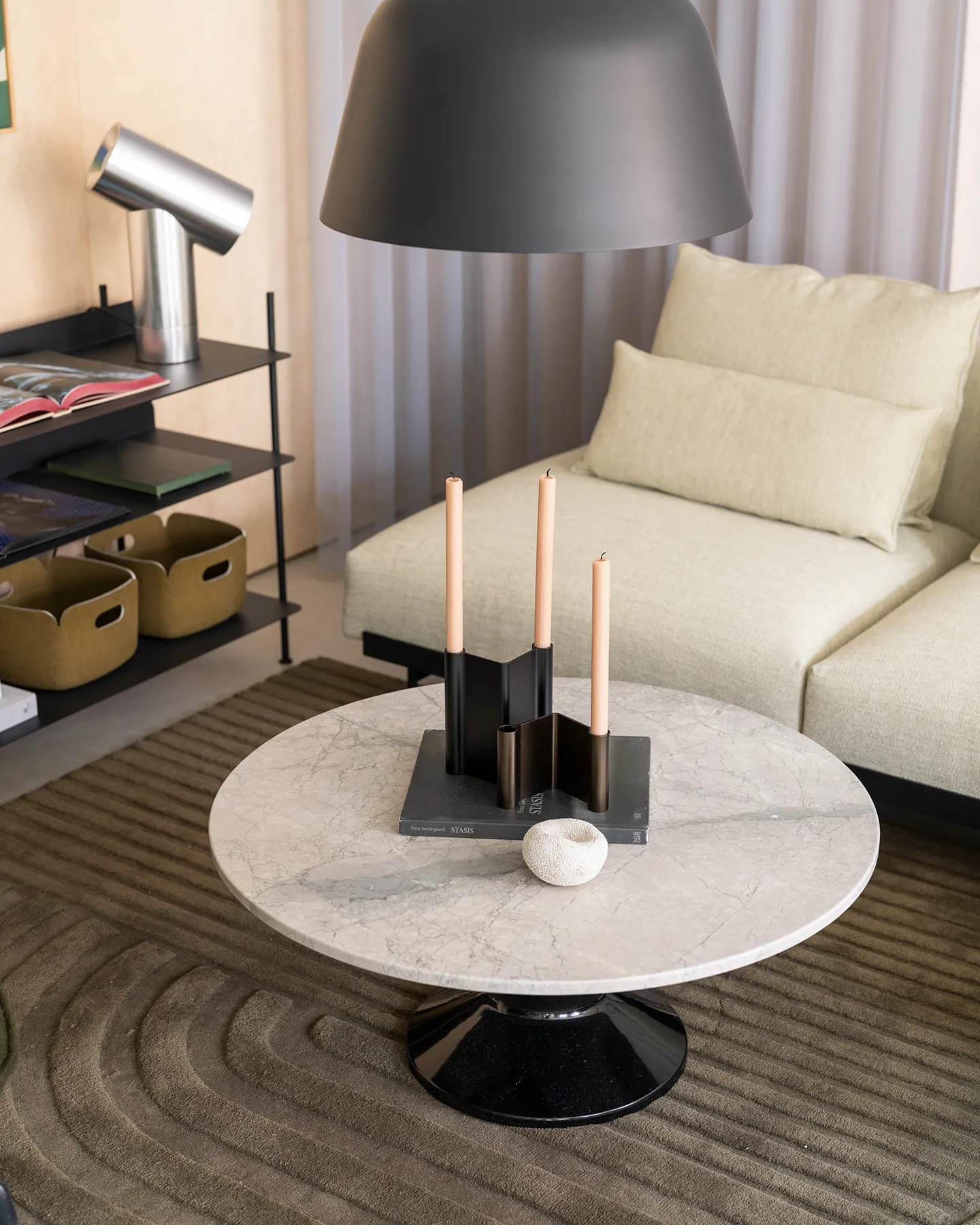 Ljushållaren tillverkas av ett enda stycke extruderad aluminium, där kanter och ljushål fräses fram med CNC-bearbetning. Den anodiserade ytan gör metallen matt, tålig och lätt att hålla ren. Pair Candleholder är enkel att placera — i fönstret, på ett soffbord eller som en låg detalj i en större dukning.