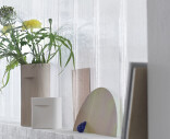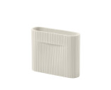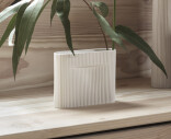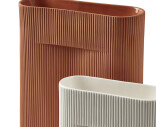 Ridge Vase erbjuder en möjlighet att presentera blommor på ett nytt sätt genom sitt skulpturala uttryck. Vasen har en vacker oval form med vertikala spår och oglaserad utsida. Inbuktningen gör att blommorna kan stå upprätt samtidigt som den fungerar som ett subtilt handtag när du flyttar vasen.