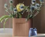Ridge Vase erbjuder en möjlighet att presentera blommor på ett nytt sätt genom sitt skulpturala uttryck. Vasen har en vacker oval form med vertikala spår och oglaserad utsida. Inbuktningen gör att blommorna kan stå upprätt samtidigt som den fungerar som ett subtilt handtag när du flyttar vasen.