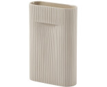 Ridge Vase erbjuder en möjlighet att presentera blommor på ett nytt sätt genom sitt skulpturala uttryck. Vasen har en vacker oval form med vertikala spår och oglaserad utsida. Inbuktningen gör att blommorna kan stå upprätt samtidigt som den fungerar som ett subtilt handtag när du flyttar vasen.
