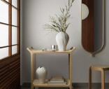 Inspirerad av naturens cykler och Karin Boyes dikt, ger vasen Anna en känsla av vårens första tecken på nytt liv. Dess organiska form och trekantiga öppning gör det enkelt att arrangera allt från enstaka kvistar till större buketter, anpassade efter säsongens växtlighet. Tillverkad i vit sodabehandlad lera med en matt finish, erbjuder vasen en subtil känsla av naturens lugn och skönhet.