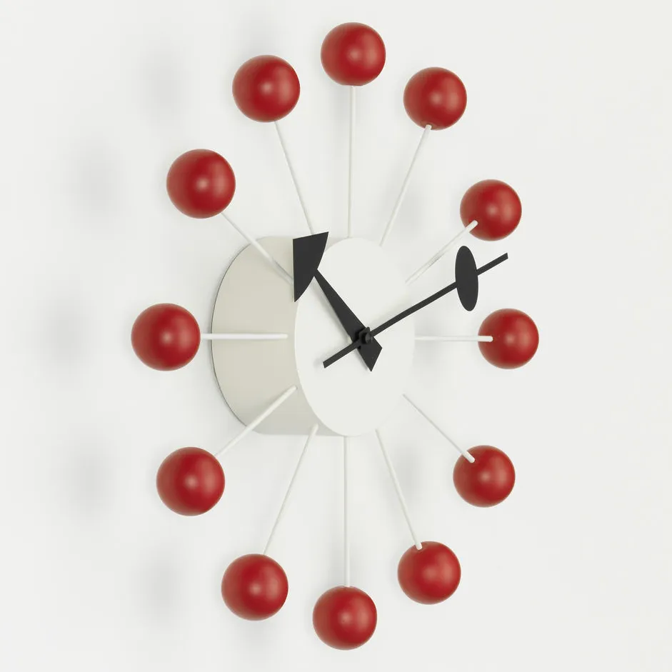 Ball Clock är en av de mest kända klockorna i George Nelsons kollektion och har blivit en symbol för amerikansk 1950-talsdesign. Nelsons vision om att en väggklocka skulle vara mer än bara ett funktionellt föremål speglas i dess unika formgivning, där färg, material och form samverkar på ett fantasifullt sätt.