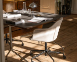 Pavilion AV16 är ett kompakt skrivbord som kombinerar elegant skandinavisk design med modern funktionalitet. Inspirerad av den ikoniska Langelinie Paviljongen i Köpenhamn, fångar Pavilion AV16 samma lätta och luftiga estetik. Bordet har en tunn skiva i linoleum med fanerade kanter samt böjda stålben.