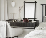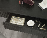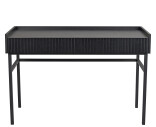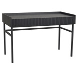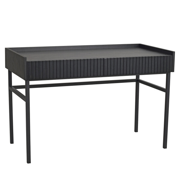 Halifax skrivbord passar perfekt till det stilrena hemmakontoret eller som sminkbord i sovrummet. I skrivbordet finns två utdragbara lådor med dolda hål förberett där du själv väljer om du vill montera de medföljande guldfärgade knopparna i borstad metall. Skrivbordet har även en praktisk sarg runt bakre delen av bordskivan som skapar avskildhet och skydd åt papper och annat. Kombinera gärna Halifax skrivbord med förvaring i samma serie för ett elegant helhetsintryck.