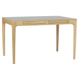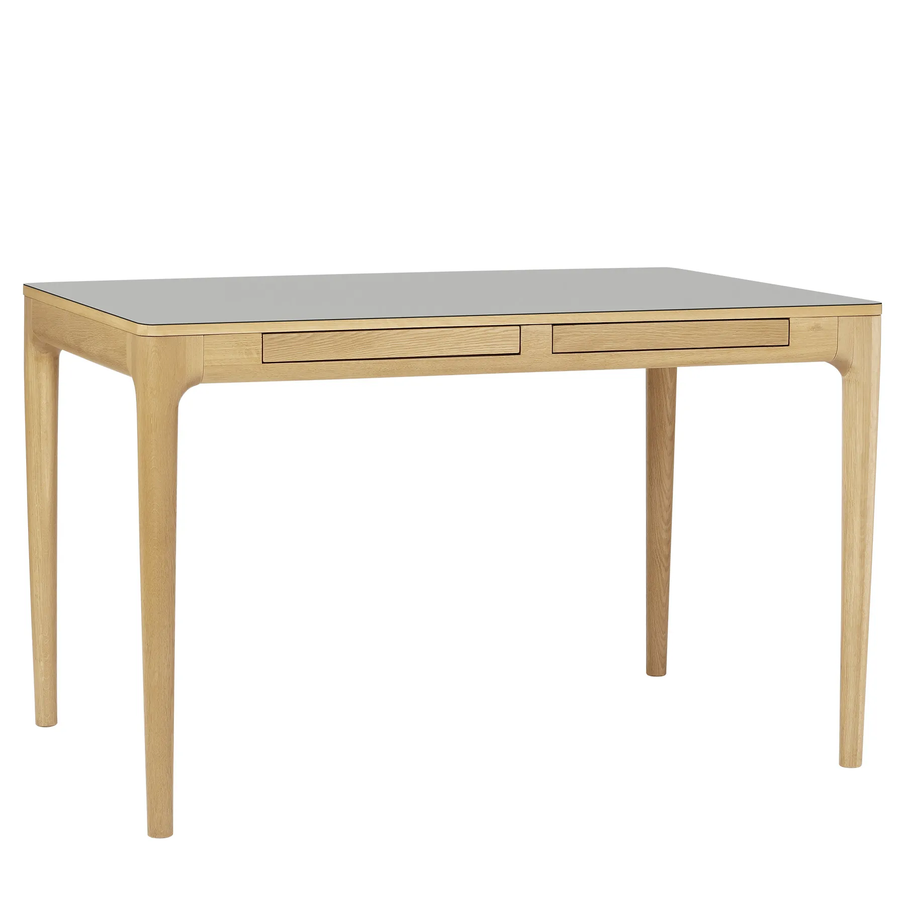 Skrivbordet finns i flera olika utföranden – med hel träskiva i valnöt eller ek, eller med en tålig Fenix-yta i tre olika färger. Fenix-laminatet ger en matt finish som står emot både repor och fingeravtryck.