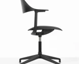 Det fyrbenta kryssunderredet ger stabilitet utan att ta plats, och stolen smälter in där du behöver den – runt ett matbord, vid ett skrivbord eller i ett samtalsrum. Sits och rygg är tillverkade i återvunnen plast, utan glasfiber, vilket gör materialet helt återvinningsbart. Alla delar är utbytbara, enkla att demontera och byggda för lång livslängd.