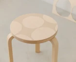 Pall 60 är en av Alvar Aaltos mest välkända möbler, ritad redan 1933 och älskad för sin funktionella och enkla form. I denna specialutgåva, skapad till Arteks 90-årsjubileum 2025, möter pallen Marimekkos ikoniska Kivet-mönster av Maija Isola. Det cirkulära mönstret, inspirerat av handklippta stenar, förstärker pallens runda sits och ger den ett kraftfullt uttryck.
