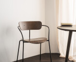 Pavilion AV2 är en stilig och luftig stol med armstöd. En lätt stomme i stålrör kombinerat med böjd träfanér. Stolen är stapelbar.