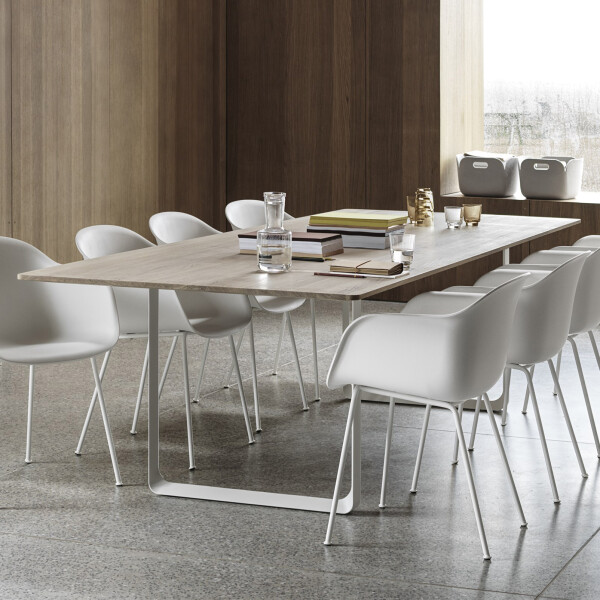 70/70-bordet har en ren och enkel design, med fina detaljer som syns när man tittar närmare. Bordet har en modern känsla tack vare den triangulära formen på benen. Välj mellan olika storlekar och ytbehandlingar för alla typer av matplatser, hemmakontor, arbetsplatser eller hotellmiljöer.