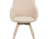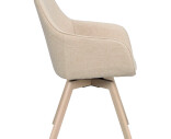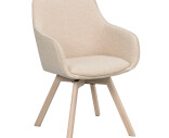 Alison från Rowico är en populär swivelstol som kombinerar komfort med modern design. Den här versionen av Alison med armstöd har en klädsel i slitstarkt, ljust beige tyg och ben i vitlaserad ek.
