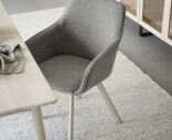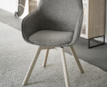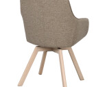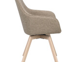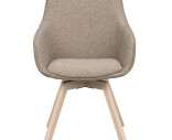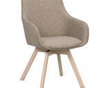 Alison från Rowico är en populär swivelstol som kombinerar komfort med modern design. Den här versionen av Alison med armstöd har en klädsel i slitstarkt, mörkt beige tyg och ben i vitlaserad ek.