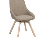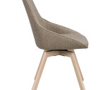Alison från Rowico är en populär swivelstol som kombinerar komfort med modern design. Den här versionen av Alison har en klädsel i slitstarkt, mörkt beige tyg och ben i ek.