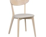 Trästol i vitpigmenterad ek med sits i beige tyg.