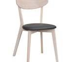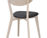 Trästol i vitpigmenterad ek med sits i svart konstläder.