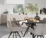 Matbordet ingår i den smidiga Carradale-serien där du kan designa bordet som du vill genom att välja mellan olika former och färger på bordsskivan och vilken typ av bordsben du vill ha.