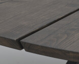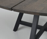 CARRADALE runt matbord i ek med tvådelad massiv bordsskiva med fasad kant och ben i svart pulverlackad metall. Välj ben i A- eller V-profil.