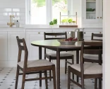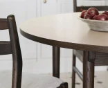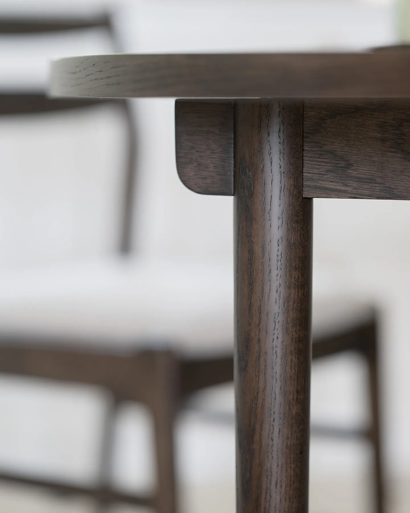 Fairmount från Rowico är ett runt matbord i ek som kombinerar modern funktion med hantverkskänsla. Den slitstarka bordsskivan i högtryckslaminat är reptålig och motståndskraftig mot väta, medan de massiva ekbenen och den mjukt formade sargen ger bordet ett elegant och genomtänkt uttryck.