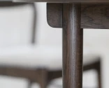 Under bordsskivan löper sargen förbi benen i en mjukt formad linje – en hantverksmässig detalj som lyfter helheten och skapar ett uttryck av genomarbetad kvalitet. Fairmount finns i både vitpigmenterad ek och brun ek, så att du enkelt kan välja den ton som bäst passar ditt hem.