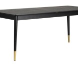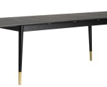Fenwood är ett stiligt, förlängningsbart matbord med detaljer i guldfärgad metall. Bordsskiva i svartlackad askfanér, ben i massivt gummiträ. Två förlängningsskivor ingår.