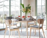 Kato är en stol där skandinavisk enkelhet möter genomtänkt komfort. Stolen är tillverkad i massiv FSC®-certifierad ek med sits och ryggbricka i formpressad plywood, klädda med slitstark textil. Kombinationen av naturmaterial och mjuka linjer gör Kato lika självklar i ett modernt hem som i en klassisk miljö.