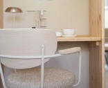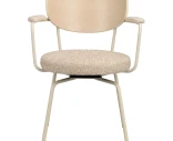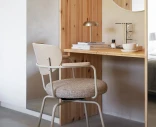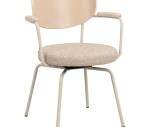 Merrick är en modern karmstol med en nätt siluett och en fin balans mellan stål, trä och textil. Den mjukt vadderade sitsen och ryggbrickan gör stolen bekväm att sitta länge i, och den praktiska svängfunktionen med automatisk återgång ger ett prydligt intryck runt bordet.