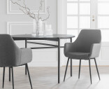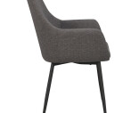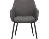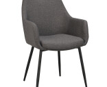 Reily stol i modernt grått tyg och svarta metallben. En komfortabel karmstol som passar bra ihop med Rowicos populära stol Sierra.