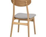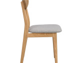 Rodham stol i lackad ek med ljusgrå sits är både trendsäker och exklusiv i sitt uttryck. Stolen består av massiv ek i både stomme och ryggbricka. Sitsen klädd med ett slitstarkt och lättskött polyestertyg är både bekväm och elegant. Rodham stolen finns i flera naturnära färger.