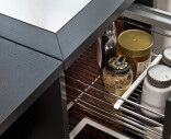 Ett multifunktionellt matbord med två uppfällbara bordsskivor - bordet rymmer tre till sex personer när det är uppfällt. Den vändbara bordsskivan har en rostfri stålsida som gör den tålig mot värme. Undertill finns extra förvaring i form av två korghyllor. Bordet är lätt att flytta tack vare hjulen.
