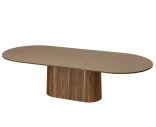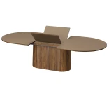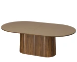 Skovby #115 är ett förlängningsbart matbord i valnötsfanér med toppskiva i tåligt nanolaminat. Med sin ovala form, den centrala pelarfoten och ett patenterat utdragssystem blir det en självklar plats för både vardag och fest.