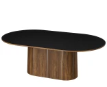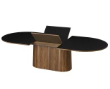 Skovby #115 är ett förlängningsbart matbord i valnötsfanér med toppskiva i tåligt nanolaminat. Med sin ovala form, den centrala pelarfoten och ett patenterat utdragssystem blir det en självklar plats för både vardag och fest.