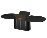 Med ett enkelt drag delas bordsskivan och den dolda tilläggsskivan fälls fram ur basen. På några ögonblick förvandlas bordet från 210 till 280 cm och blir ett förlängningsbart matbord med plats för 2–4 extra gäster – totalt upp till 12 sittplatser. Det gör #115 lika praktiskt till familjens vardagsmiddagar som till stora kalas.