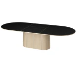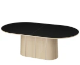 Skovby #115 är ett förlängningsbart matbord där vitoljad ek möter slitstarkt nanolaminat. Med sin ovala silhuett, den centrala pelarfoten och ett patenterat utdragssystem blir det en självklar samlingspunkt för både vardag och fest.