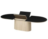 Med ett enkelt drag delas bordsskivan och den dolda tilläggsskivan fälls fram ur basen. På några ögonblick förvandlas bordet från 210 till 280 cm och blir ett förlängningsbart matbord med plats för 2–4 extra gäster – totalt upp till 12 sittplatser. Det gör #115 lika praktiskt till familjens vardagsmiddagar som till stora kalas.