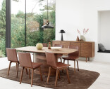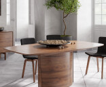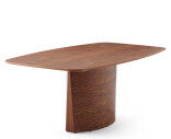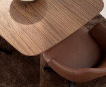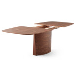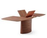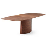 Matbord 117 har en rektangulär design med rundade hörn och en central piedestalbas. Den har en mjukt geometrisk form med kantiga, kilformade ändstycken. Bordet är utrustat med ett patenterat, synkront utdragssystem. Dra isär bordsskivan för att visa den gömda utdragsskivan i underredet och tryck lätt för att höja och fälla ut skivan.