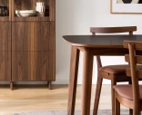 Skovby #119 är ett stilrent matbord för hem som värdesätter kvalitet och design. Bordsskivan har en längsgående ådring, medan tilläggskivorna har en tvärgående struktur för att skapa en fin kontrast.