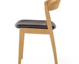 Stol 825 i oljad ek är en populär Skovby-ikon med en modern look och nostalgisk känsla. Inspirerad av möbler från mitten av 1900-talet med en skandinavisk twist. Den rundade ryggen ger ett bra stöd för hela kroppen, och den stoppade sitsen har hög komfort. Klädd med slitstarkt svart läder. 825 är lätt att placera och kombinera med andra stolar.