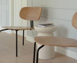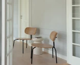 Curious loungestol kombinerar skandinavisk minimalism med en inbjudande och tidlös design. Tillverkad i ekfanér med ben i mässing eller svart stål, skapar den en harmonisk balans mellan naturlig värme och modern elegans.