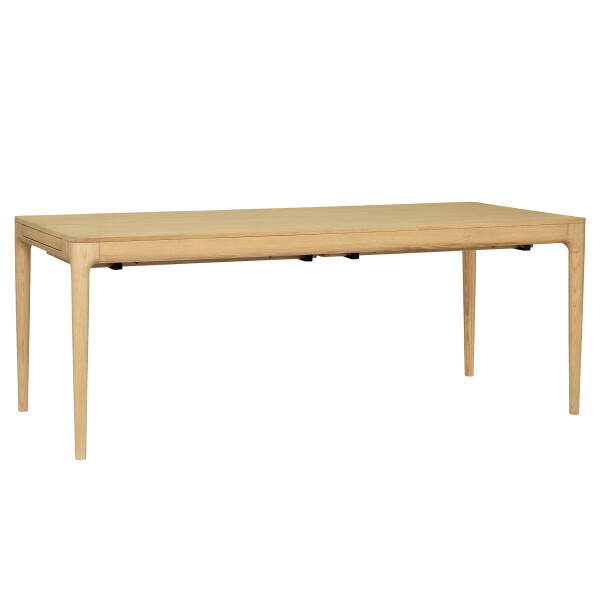 Det förlängningsbara matbordet har två inkluderade tilläggsskivor och två textilklädda utdragslådor i var ända av bordet, där du snabbt kan stuva undan vardagens stök, papper eller småsaker. Lådorna fungerar också som hållare för tilläggsskivorna, vilket gör bordet stabilt även när det är förlängt. Tilläggsskivorna är gömda under bordet – snabbt och enkelt att läggas på och tas av.