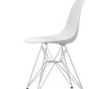 Eames Plastic Side Chair DSR RE med naturvit sits och förkromade ben.