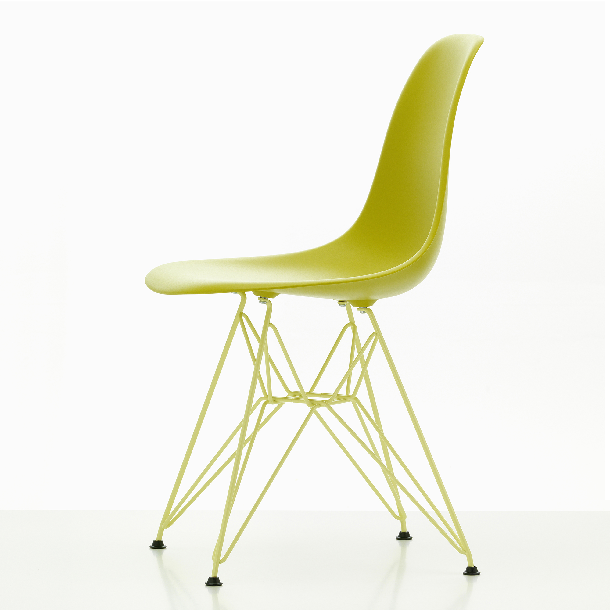 Eames Plastic Side Chair DSR RE mustard/citron, baserad på Charles och Ray Eames originala färgpalett.