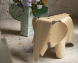 Eames Elephant Plywood i kastanj är en elegant version av den ikoniska Eames-elefanten från 1945. Tillverkad i formpressad plywood med fanér i varm, ljus ton och skyddande lackfinish – ett tidlöst designobjekt som förenar form, hantverk och historia.