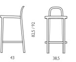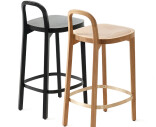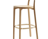 Siro barstolen är en hög pall med vackra proportioner, vars låga ryggstöd som fungerar som handtag. Tillverkad i ek med vaxad yta. Fotstöd i mässing.