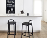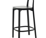 Siro barstolen är en hög pall med vackra proportioner, vars låga ryggstöd som fungerar som handtag. Tillverkad i svartbetsad ek. Fotstöd i svartmålad metall.