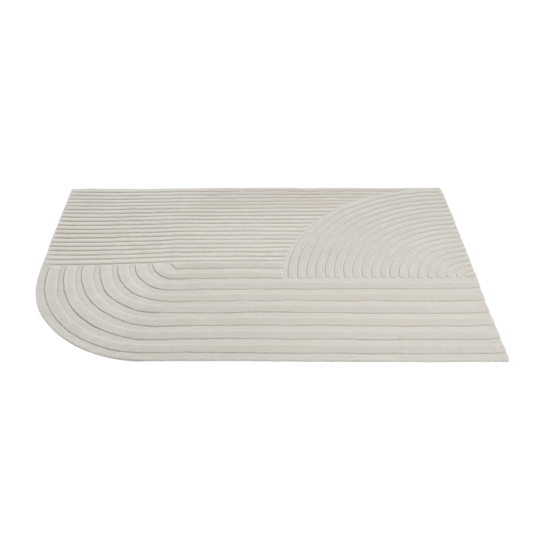“The Relevo rug came to be as it often does; on the drawing board with paper and pencil. We like to create a whole story around a project, this time with a rug that could be a sculpture in its own right, virtually changing the perception of a room. Relevo’s swooping lines were inspired by land art and its sometimes furrowed, hypnotic paths in the soil. Relevo means relief in Latin, emblematic of the rug’s geometric pattern, made by trimming the hand tufted rug in levels and thereby creating a subtle effect of light and shadow, a compelling visual expression.”