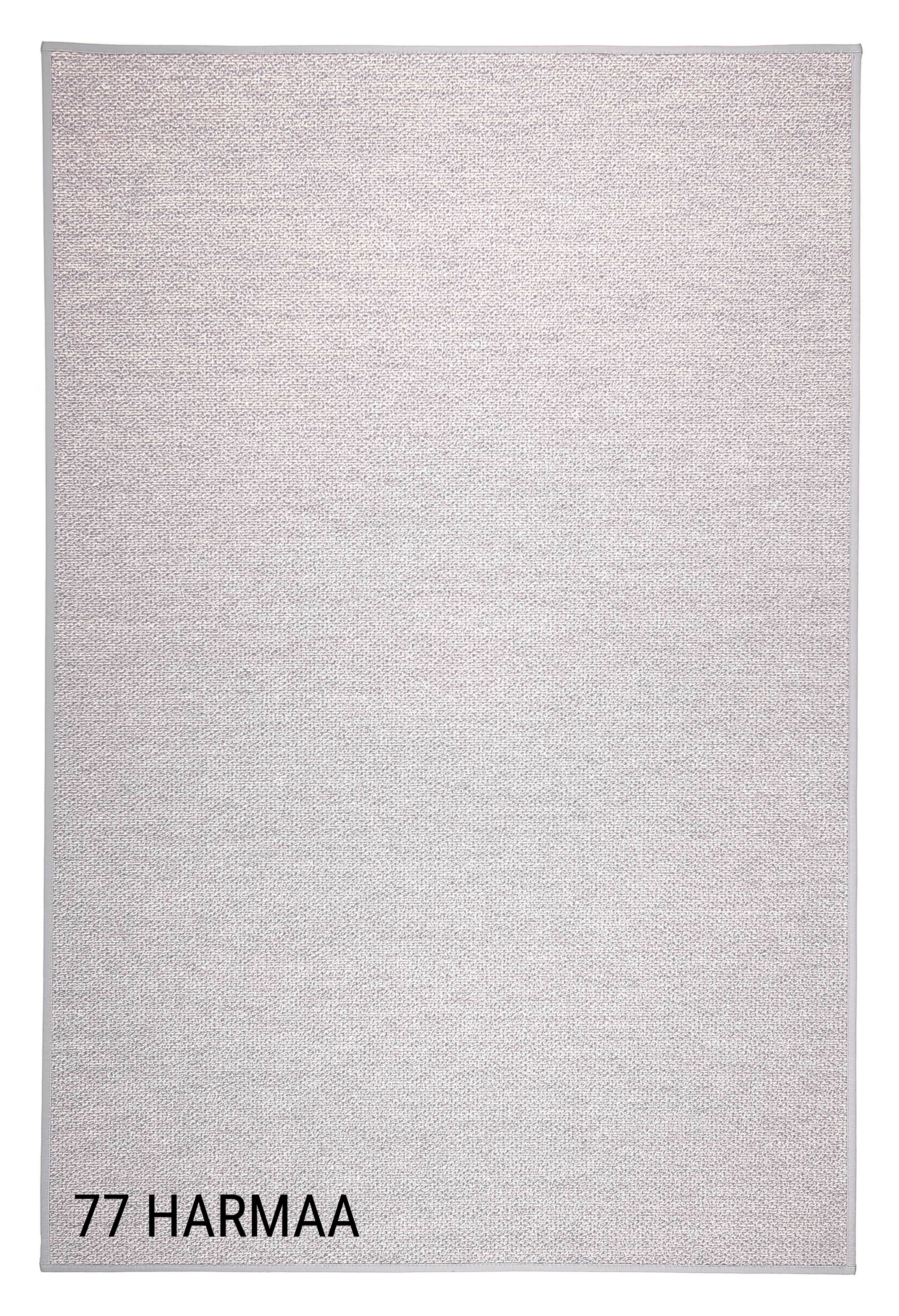 Den enfärgade, dämpade Aho-mattan fungerar både ensam och tillsammans med Viita-mattan som är gjord av samma material. Mattan är smutsavstötande och kantad med ett smalt bomull- eller linneband.