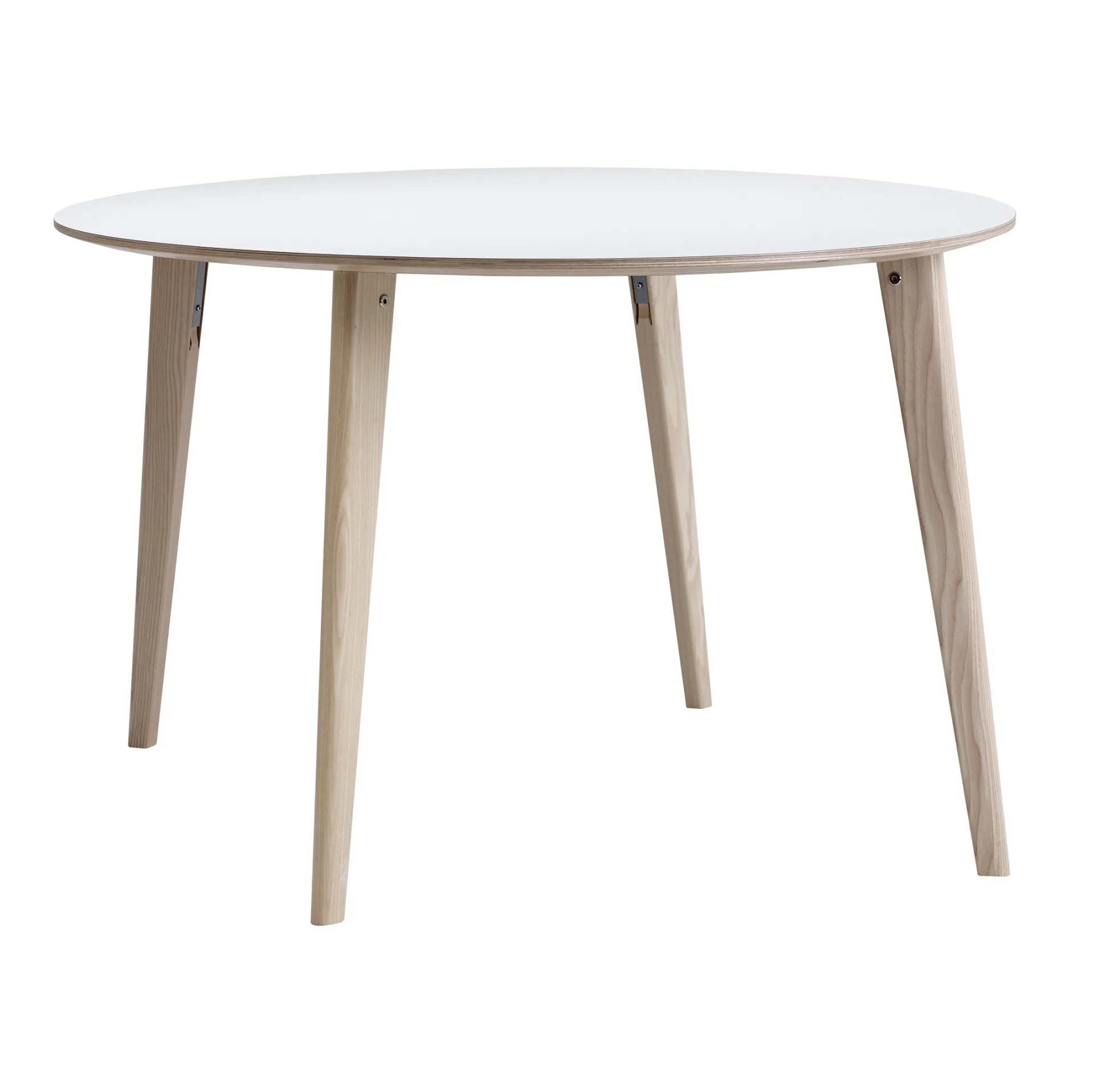 Outlet | Lundbergs Möbler SAREK bord Ø100cm vit laminat, vitvaxad ek