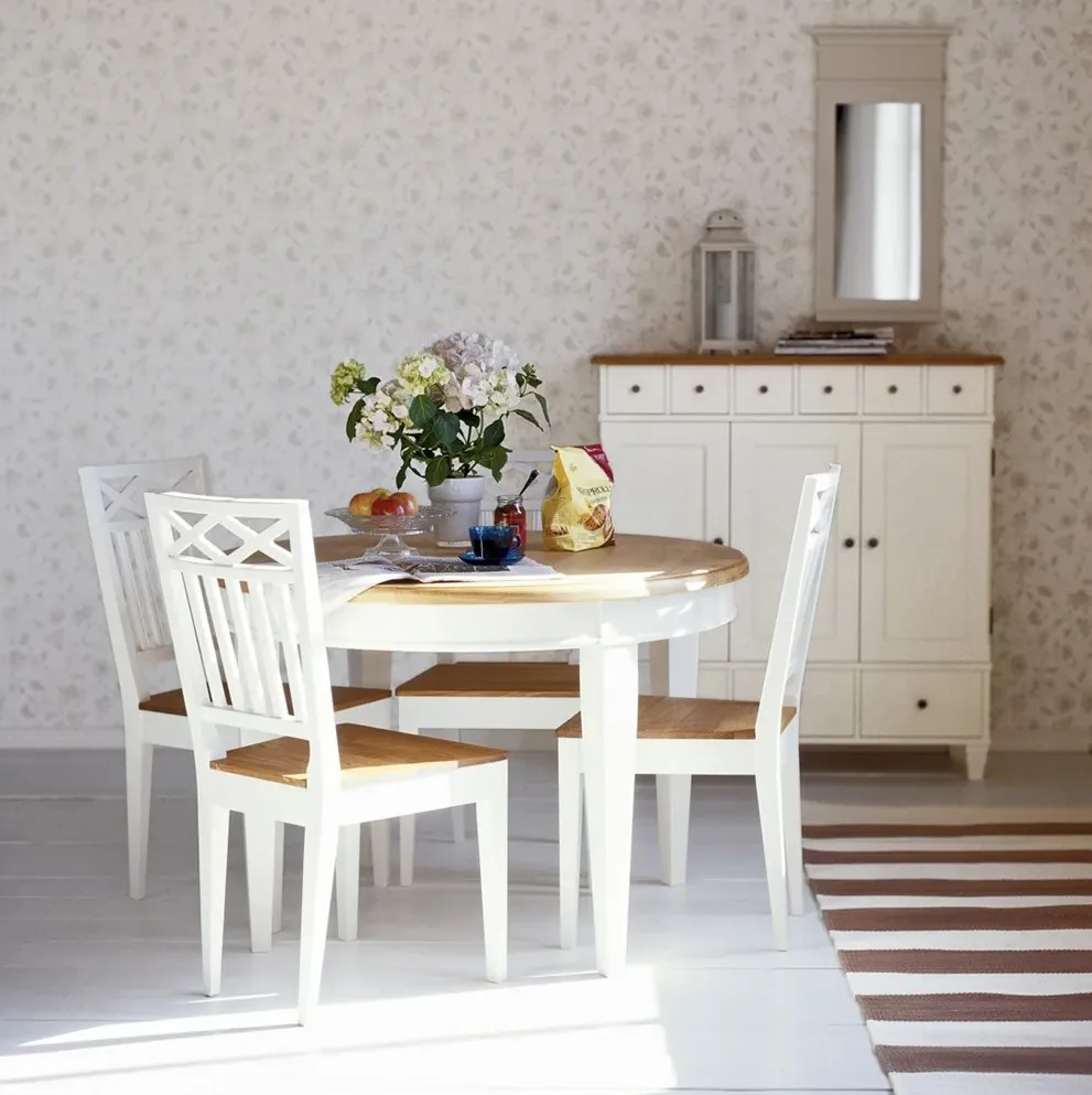 Diameter 112 cm (bordet har förlängningsmöjlighet, iläggsskiva kan köpas separat)