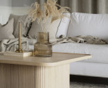 Sullivan är ett trendigt exklusivt soffbord i skandinavisk design. Finns i två olika storlekar, placera dem separat eller tillsammans som satsbord. Bordsskivan i ekfanér och kanter i massiv ek har rundande hörn som ger den en mjuk känsla. Centrumfotens väggar med frästa spår består av massiv ek.