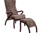 Kroken är en härlig fåtölj i fårskinn, inklusive fotpall, med steglös lutning av rygg och reglerbart nackstöd.