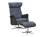 Caliber fåtöljen med fotpall är till dig som vill skönt slappna av där hemma. Den har lättmanövrerad inställning av rygg- och nackstöde samt snurrfot.